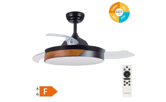 Ventilador Techo Likasi Con Luz CCT Regulable Y Mando Ø107 3 Aspas Retráctiles DC