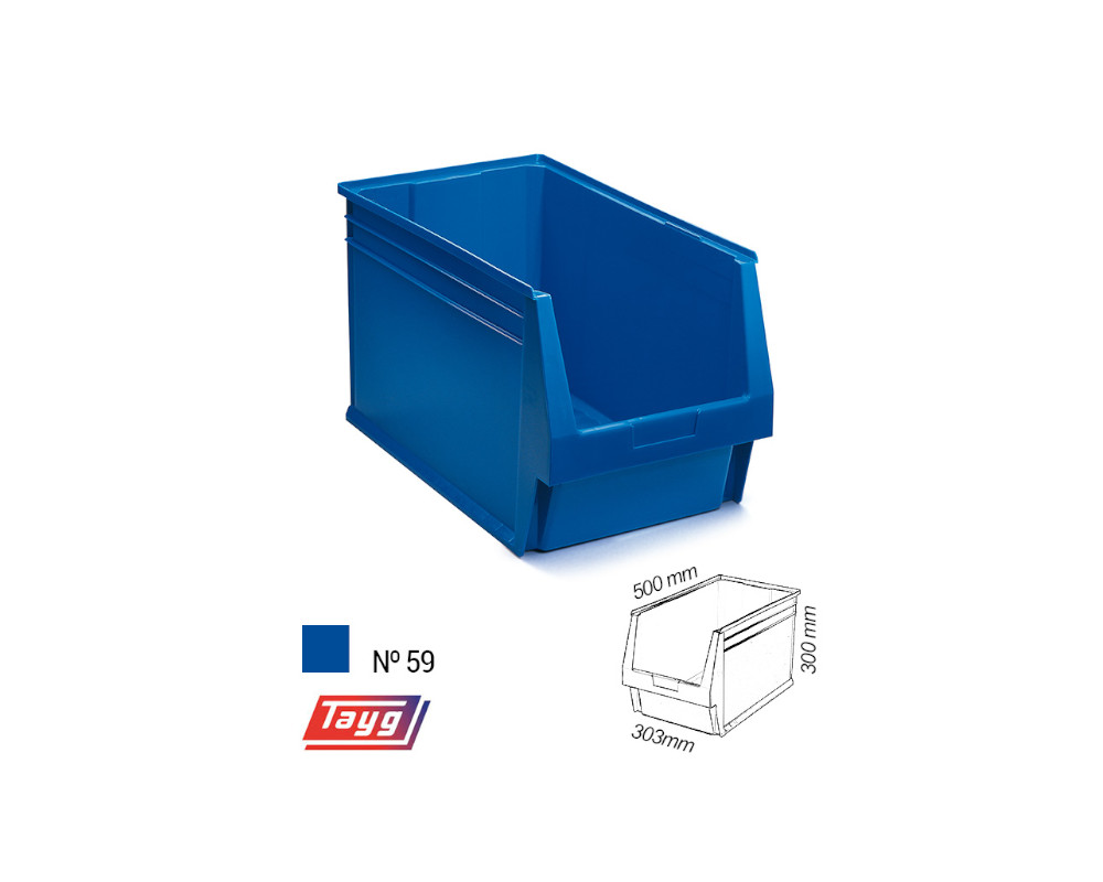 Gaveta apilable nº 59. Color Azul. Medidas 300x303x500mm. Material PP. Capacidad 34 litros. Apto para uso alimentario. Resistente y fácil de limpiar.