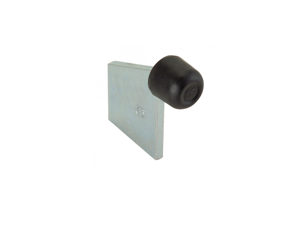 Herraje metálico diseñado para instalarse en el perfil inferior de puertas correderas, evitando que la puerta se desplace fuera de las guías al final de su recorrido.