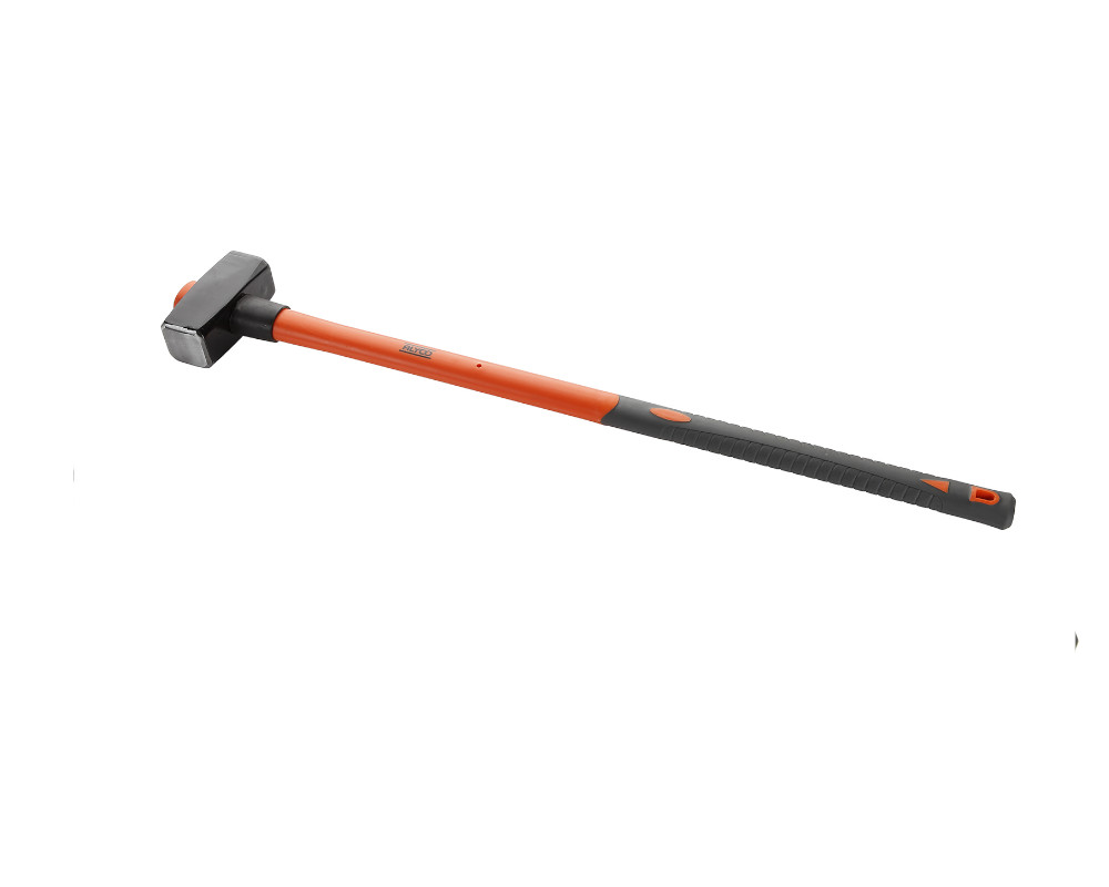 Maza porra de construcción con mango de fibra de vidrio bicomponente y fijación de la cabeza por ojo cónico.