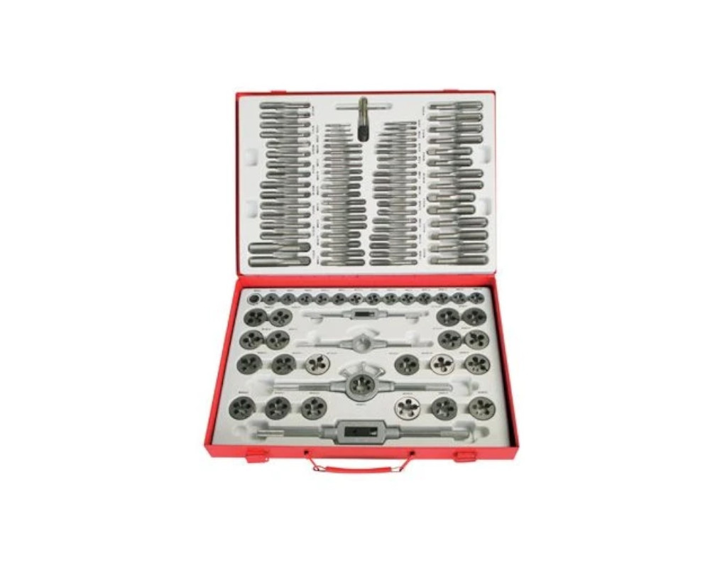 El Maletín de Metal Works SKC1100ETM está compuesto por 110 piezas. Un juego completo de machos y giramachos portafileras en una práctica caja metálica.
