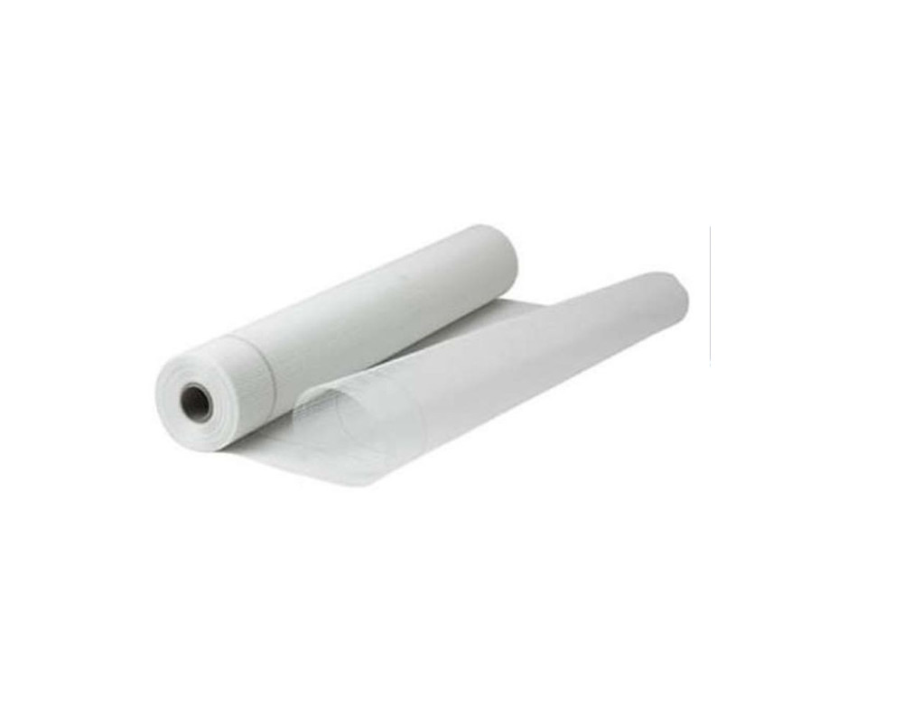 Rollo de malla de fibra de vidrio de color blanco para reforzar el yeso aplicado en un revoco vertical. Se utiliza en trabajos de enlucido y de renovación general. Previene la formación de grietas y fisuras al extenderla sobre la primera capa de yeso fresca y después aplicar una segunda capa.