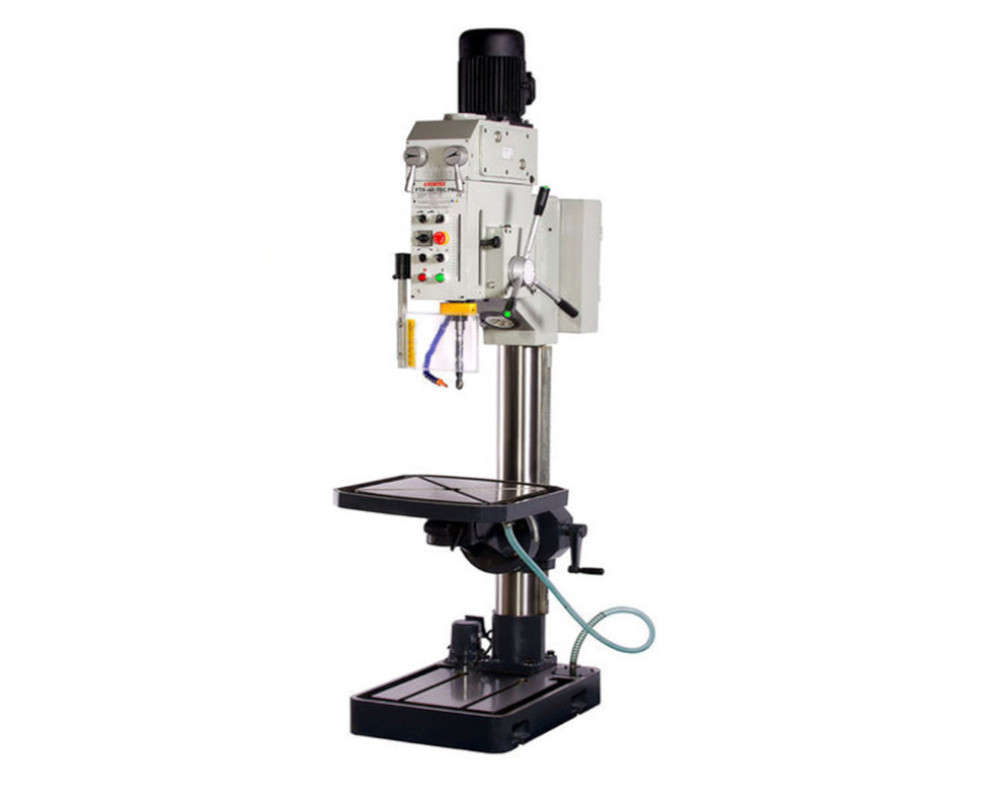 Alimentación 400-f3, potencia w 850 – 1500, potencia HP 1,5 – 2 , Nº velocidades 18, velocidad 50 – 1450, transmisión engranajes, cono morse 4, recorrido 180, capacidad máxima de broca 16 – 32, capacidad broca en acero 35, capacidad broca fundición 40, capacidad de roscado métrica 24, profundidad de taladro 180, diámetro columna 150, distancia portabrocas- columna 350, distancia eje- base 1215, distancia eje – mesa 50 -770, tamaño ranura en T 2 X 18, tiene equipo de refrigeración, avance husillo 0,1 / 0,2 , inclinación de la mesa 90º, dimensión de la base 735 x 510, dimensión de la mesa 560 x 560, recorrido máximo mesa de trabajo 720, dimensiones de la máquina 2270x580x1100 .