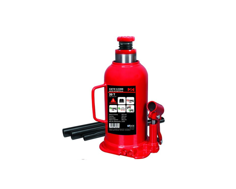 El Gato de Botella CATH12080 de Metalworks es un Gato Hidráulico robusto, estable y resistente a la inclinación gracias a la base y con una capacidad de elevación de 8T.