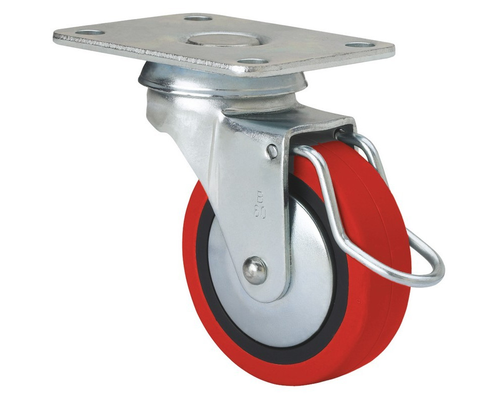 Ruedas rojas de poliuretano inyectado blando especialmente indicado para soportar cargas hasta 40 Kg.