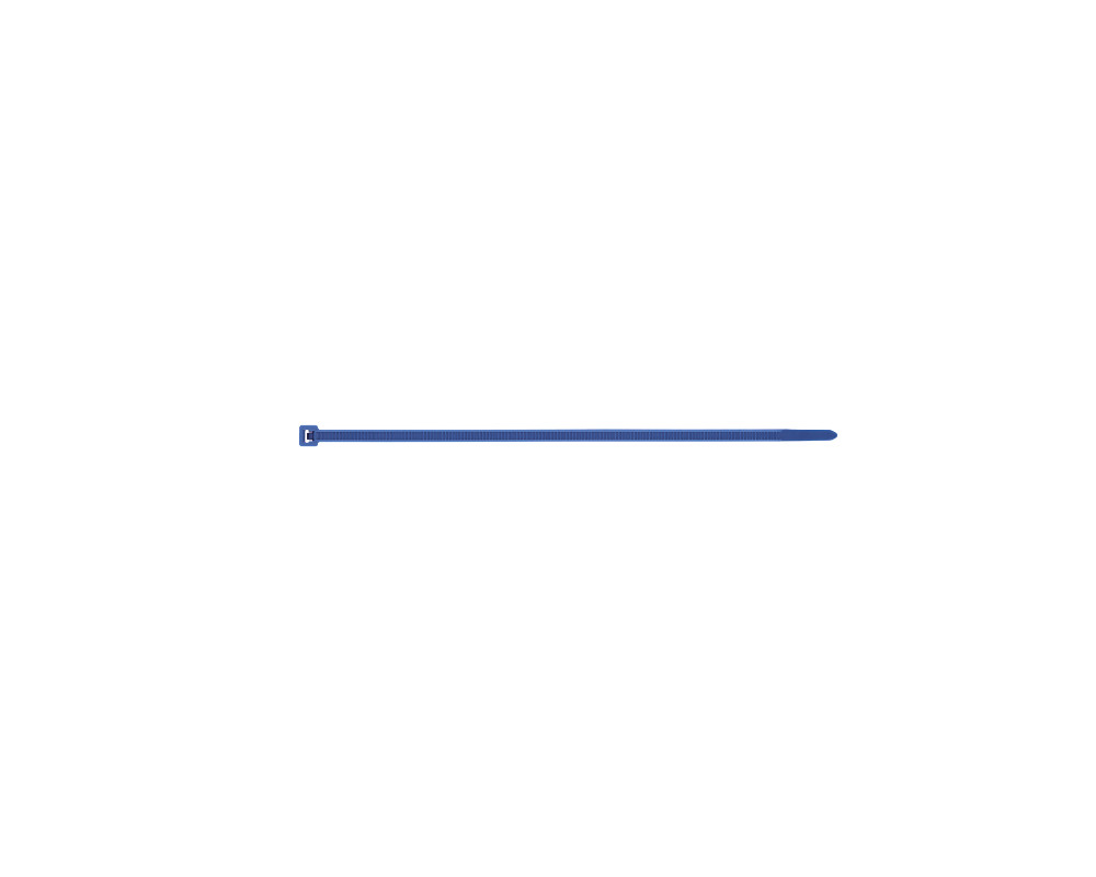 Brida de nylon azul. Permite fijar cables, mangueras o tubos en instalaciones profesionales. Su diseño asegura una instalación fácil y rápida, tanto manualmente como mecánicamente. El color azul ayuda a identificar con rapidez los elementos atados.