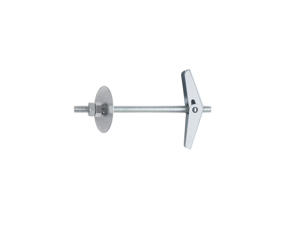 Palomilla con muelle para fijar elementos ligeros en techos huecos de yeso laminado, escayola u otros materiales como hormigón hueco. Incorpora una varilla roscada, tuercas y una arandela para instalar con facilidad lámparas, ventiladores u otro tipo de objetos. Está fabricada en acero con recubrimiento zincado.